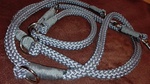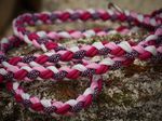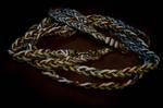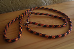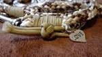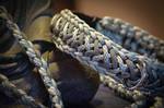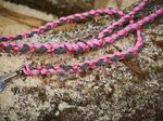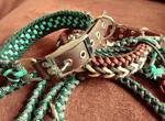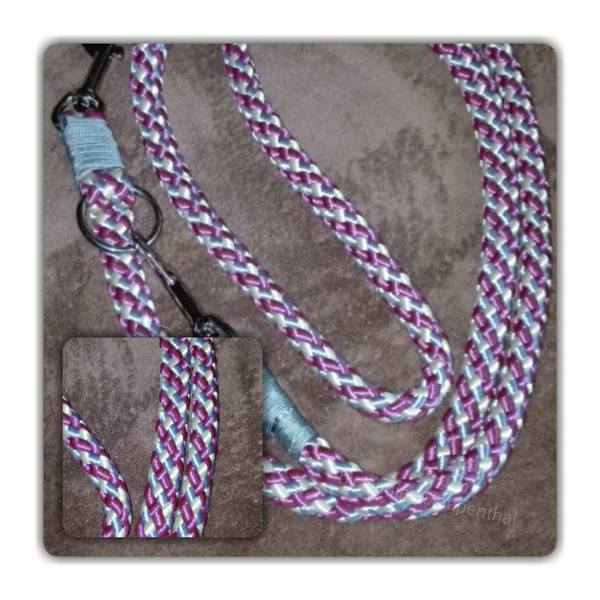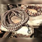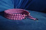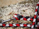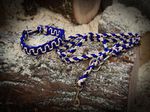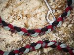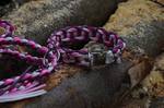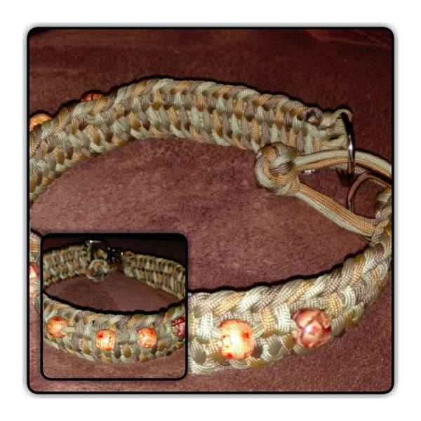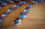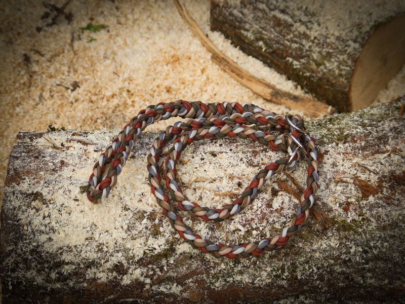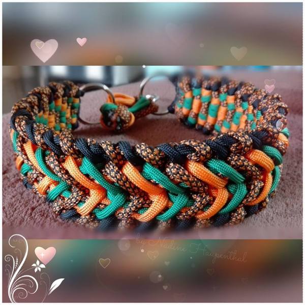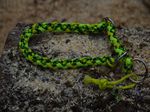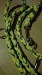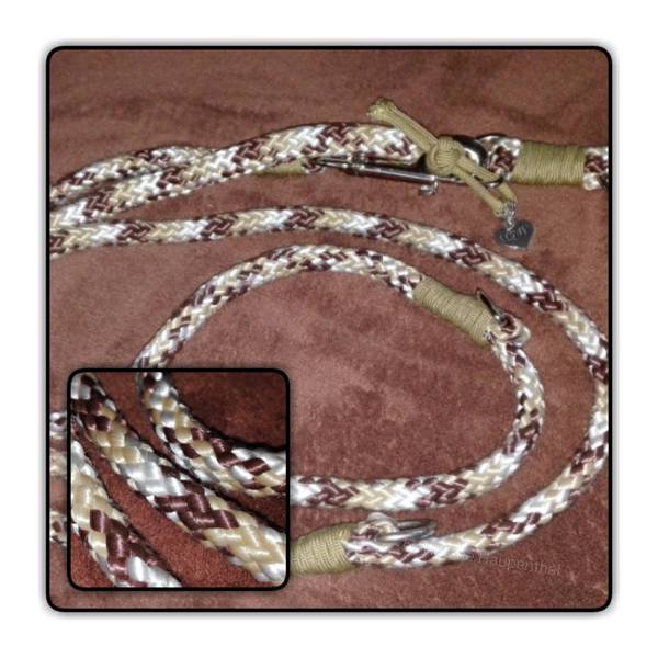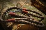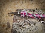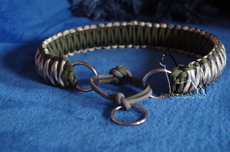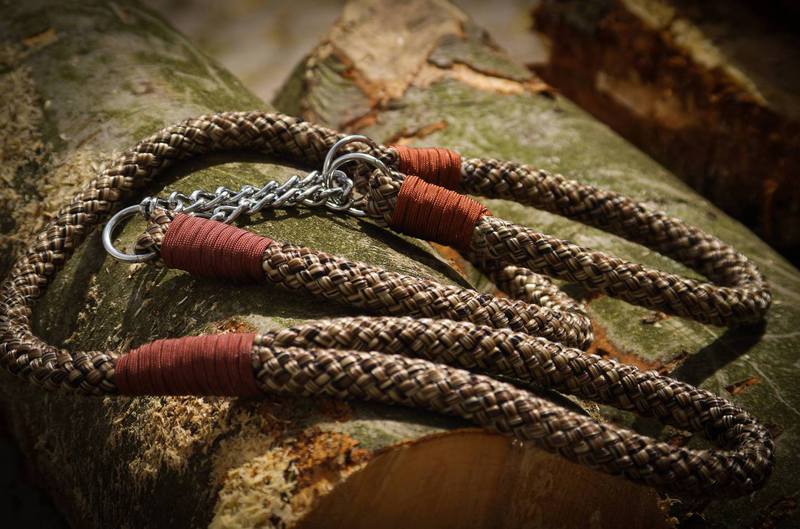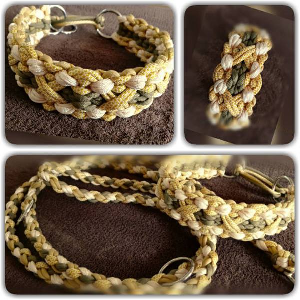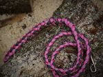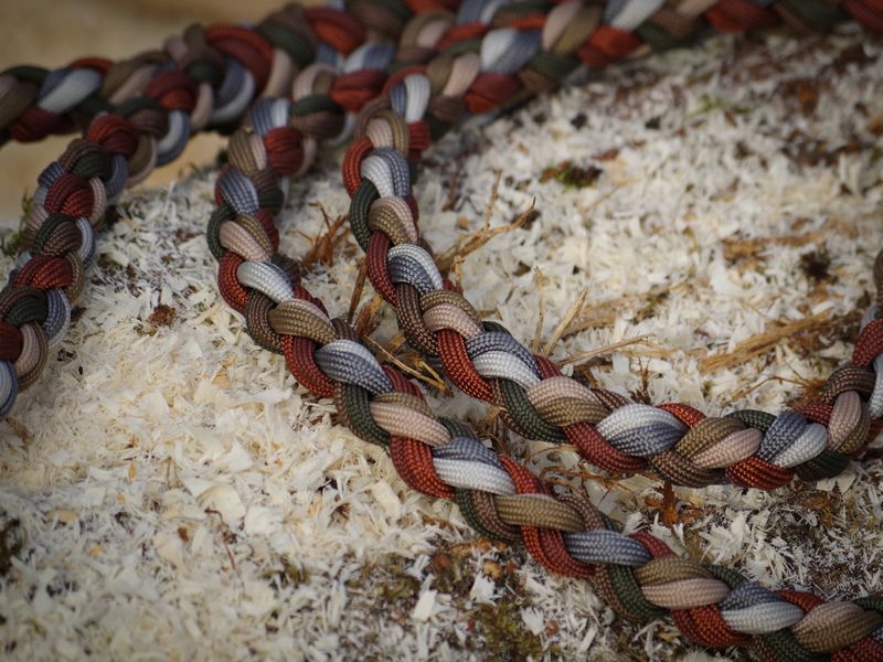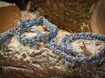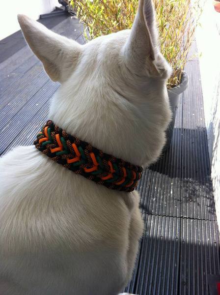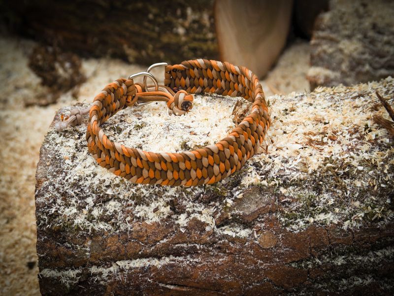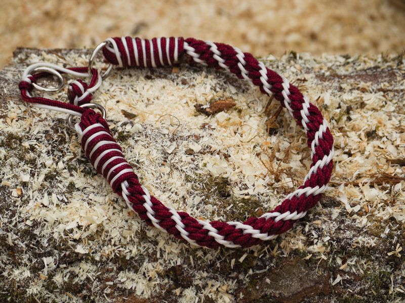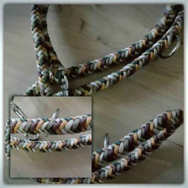 Paracord ist ein sehr vielseitiges Material. Meine Leinen/ Halsbänder sind aus Paracord 550 (TypIII, ein Strang hat eine Mindestbruchlast von 249 kg) gefertig. Es ist sehr pflegeleicht, reißfest, robust, trocknet sehr schnell und ist bei 30° in der Waschmaschine waschbar. Paracord kann des Weiteren nicht schimmeln oder modern.