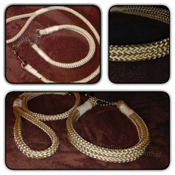 ebenso bei den Hälsbändern, vom Zugstop mit verschiedenen Varianten, bis hin zum normalen Halsband mit unwahrscheinlich vielen Flechtmöglichkeiten mit Kunstoff oder Metallverschluss, mit Leder oder Boithane vieles ist möglich. Ganz individuell für jeden 2 Beiner