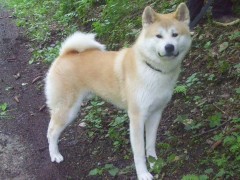 Akito ist ein sehr liebevoller Rüde besonders im Umgang mit Kindern. Er besitzt einen sehr ausgeglichenen, freundlichen Charakter. Genau wie seine Mutter, kann er bei Begrüßungen recht stürmich sein. Auch mit Artgenossen zeigt sich Akito gut sozialisiert und freundlich-offen im Umgang. Auch mit Welpen und Junghunden kommt er bestens zurecht.